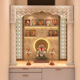 Pooja goods for home mandir encompass essential items that facilitate daily rituals and foster a serene spiritual environment. These include sacred idols, brass or copper diyas, incense holders, kalash, pooja thalis, and bells. Pooja goods for home mandir